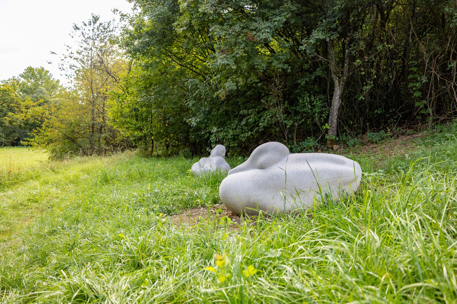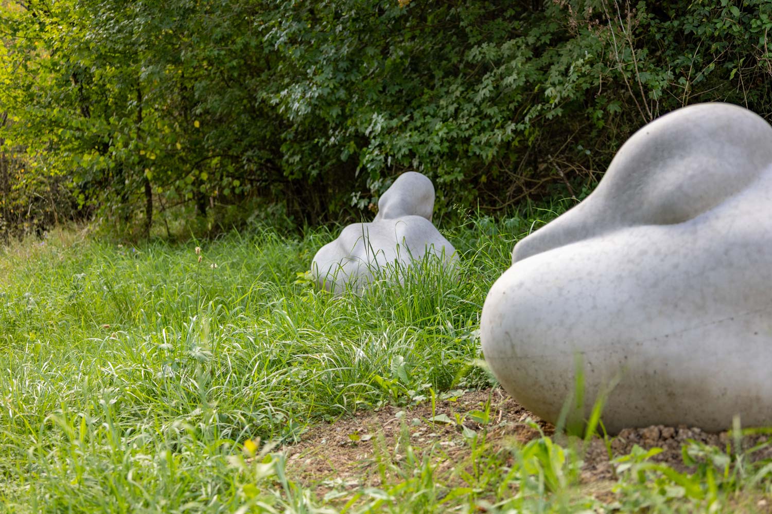 In der Nähe der Kirnau, beim Ortsausgang Rosenberg, sind zwei Figuren zu finden, die wie Enten im Gras da liegen. Hier war zuvor die Skulptur Luftschicht am Ufer.