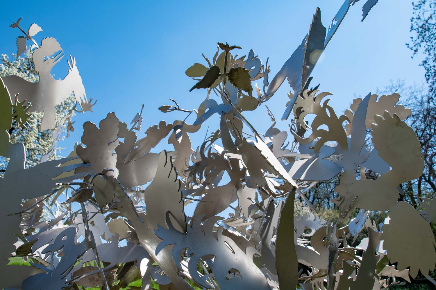 Ihr poetisches Kunstwerk besteht aus 22 identischen Einzelteilen, die sie in Handarbeit in unterschiedliche Formen gebogen und verschweißt hat.