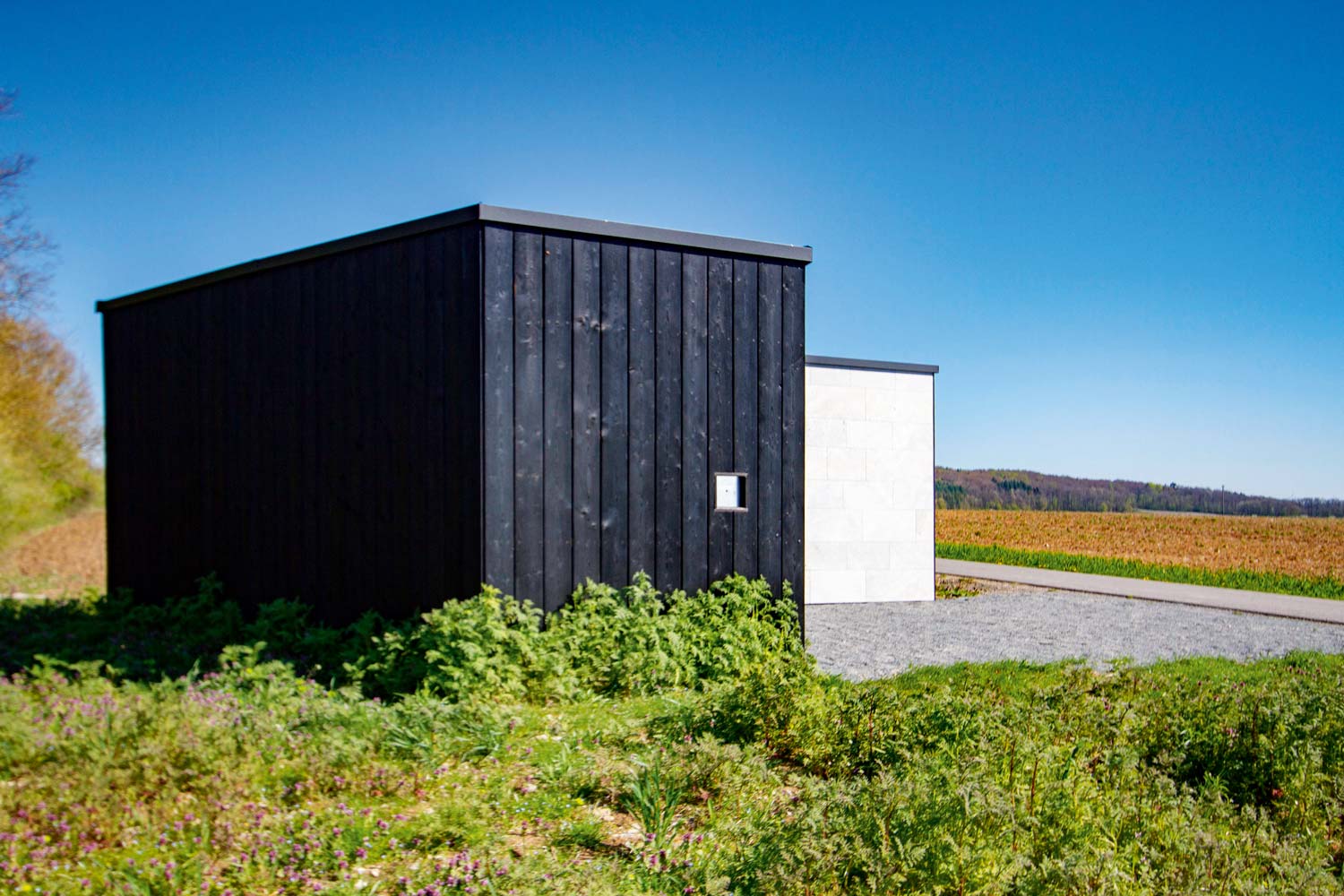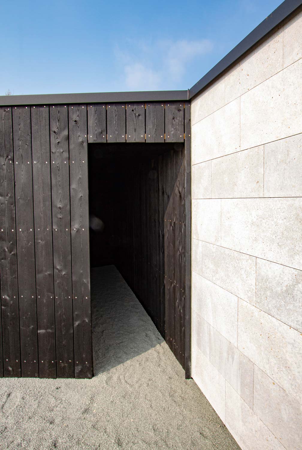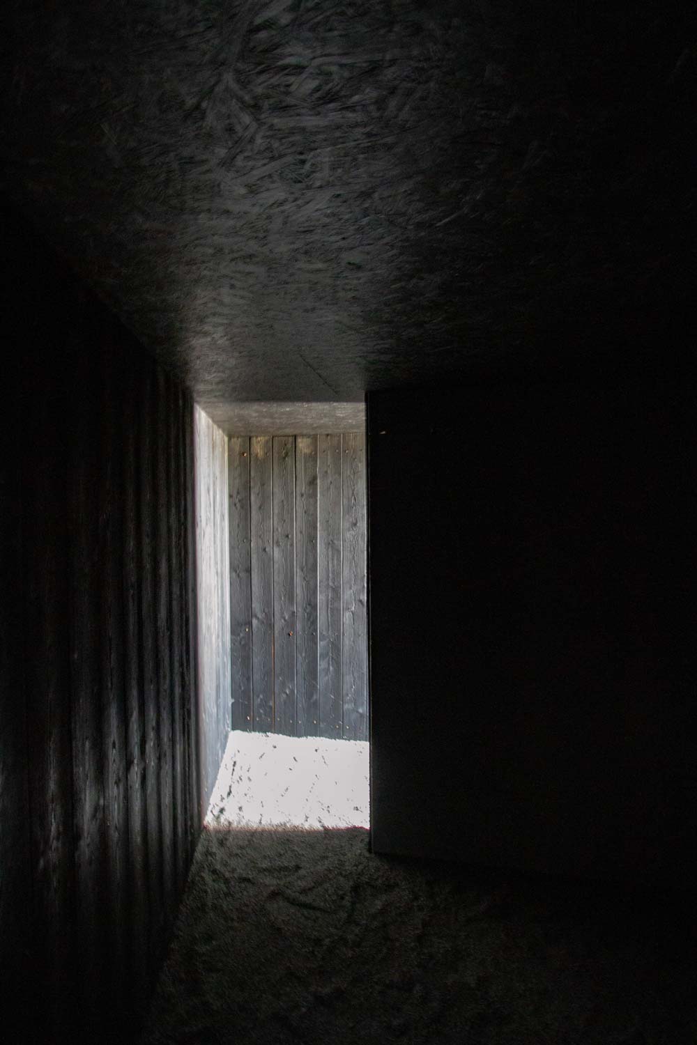 „Licht, lautlos“ stellt eine begehbare Skulptur aus Holz und Stein dar, die zugleich als Camera Obscura funktioniert.