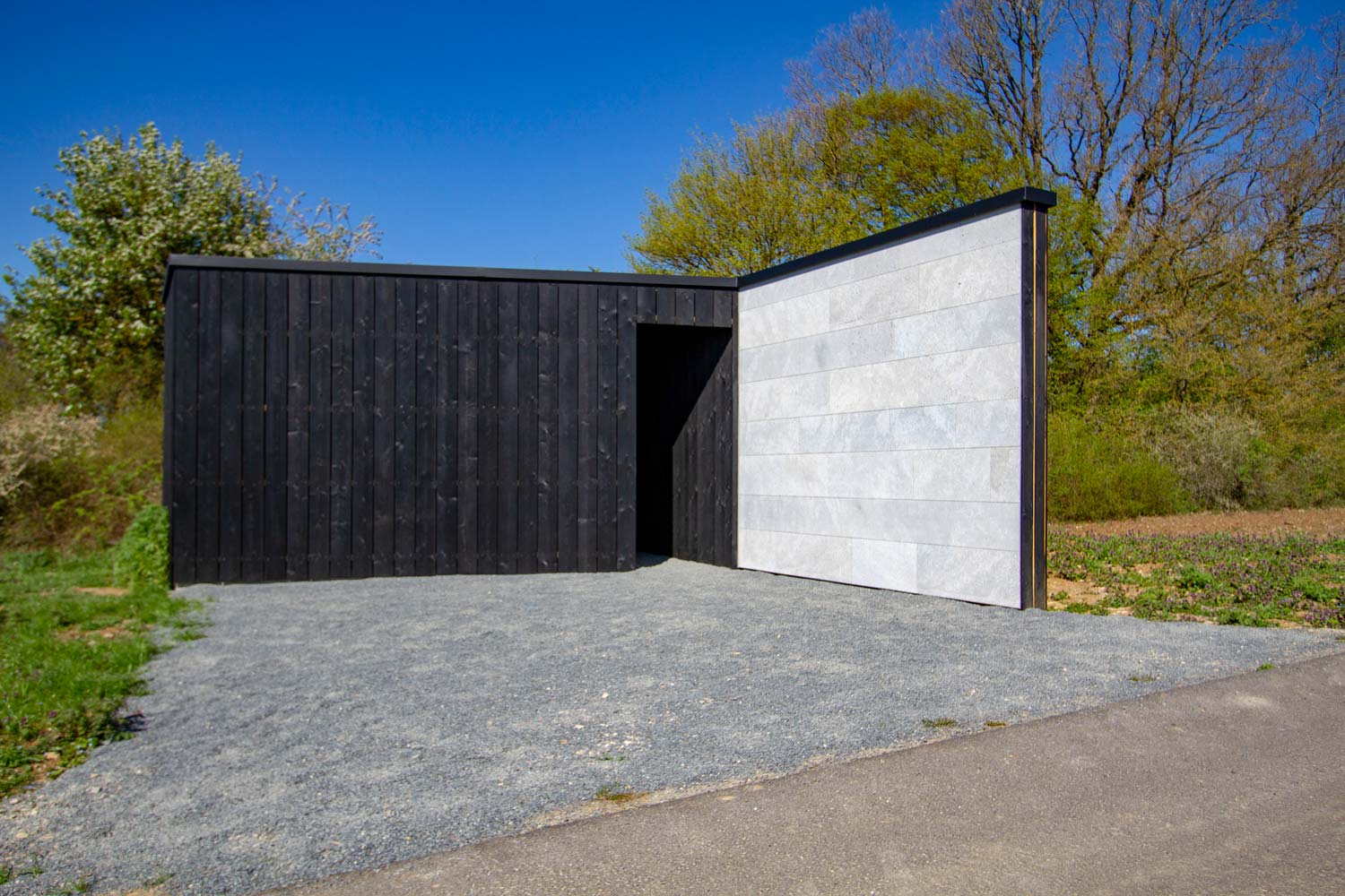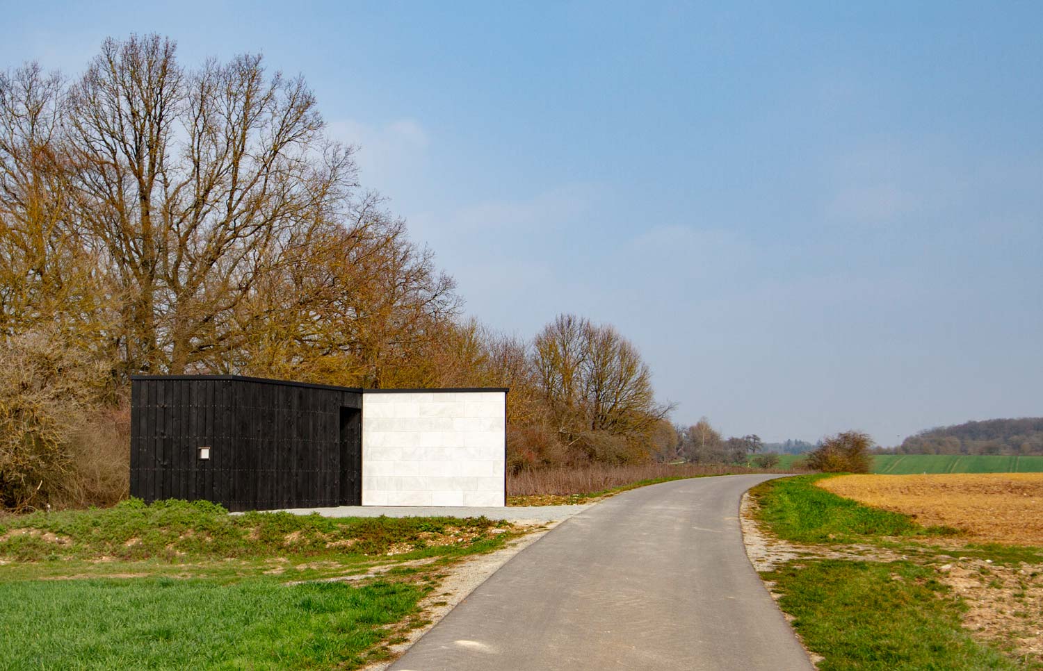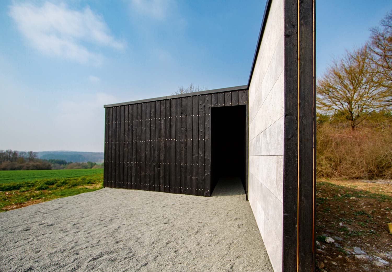 „Licht, lautlos“ stellt eine begehbare Skulptur aus Holz und Stein dar, die zugleich als Camera Obscura funktioniert.