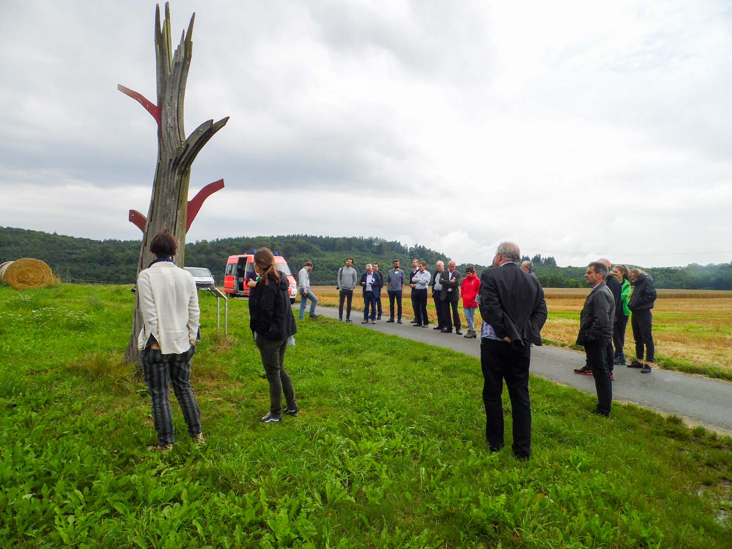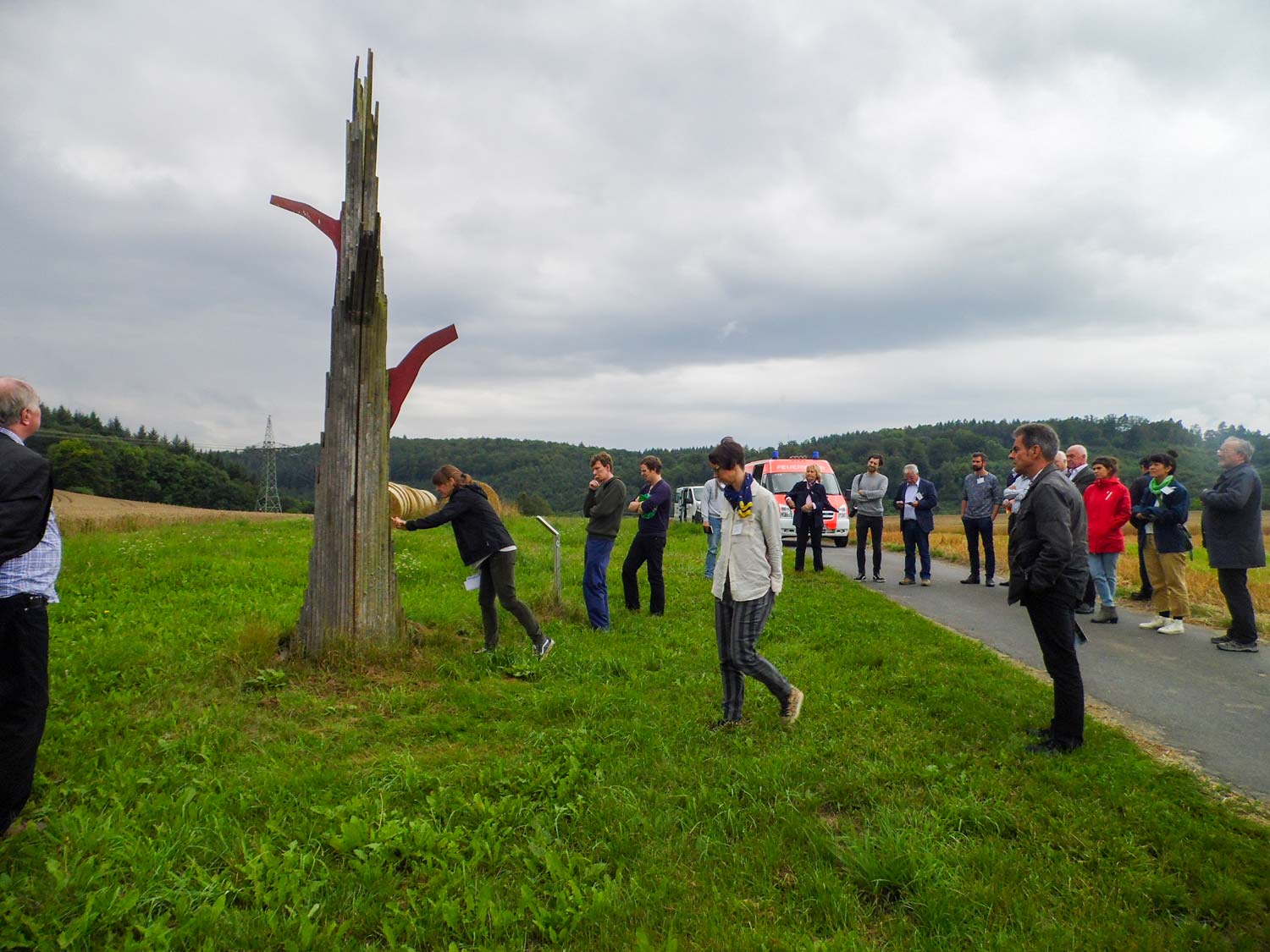 Die ursprüngliche Form der Eiche hat nichts mehr gemeinsam mit der Form des skulpturalen Baumes, der sich als Stamm mit geschälter Rinde aus dem Boden erhebt. Lamellenartig zersägt, umfasst der Eichentorso einen Fremdkörper, der mit seinen stählernen Ablegern aus dem Stamm herausragt und den gewaltigen Eingriff sichtbar macht. Der Baum erweckt den Eindruck, unvollendet oder gar tot zu sein, kommt also nie an die Schönheit eines lebenden Baumes heran. Das Kunstwerk ist den natürlichen Witterungsverhältnissen ausgesetzt. Die Stahlableger werden im Laufe der Zeit rosten und in einem Prozess der Veränderung ihr ursprüngliches Aussehen verlieren.