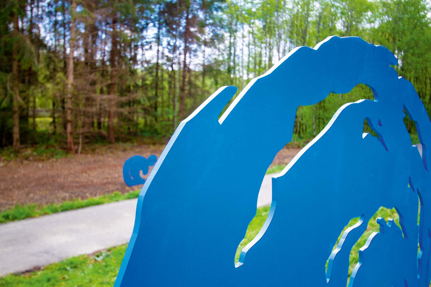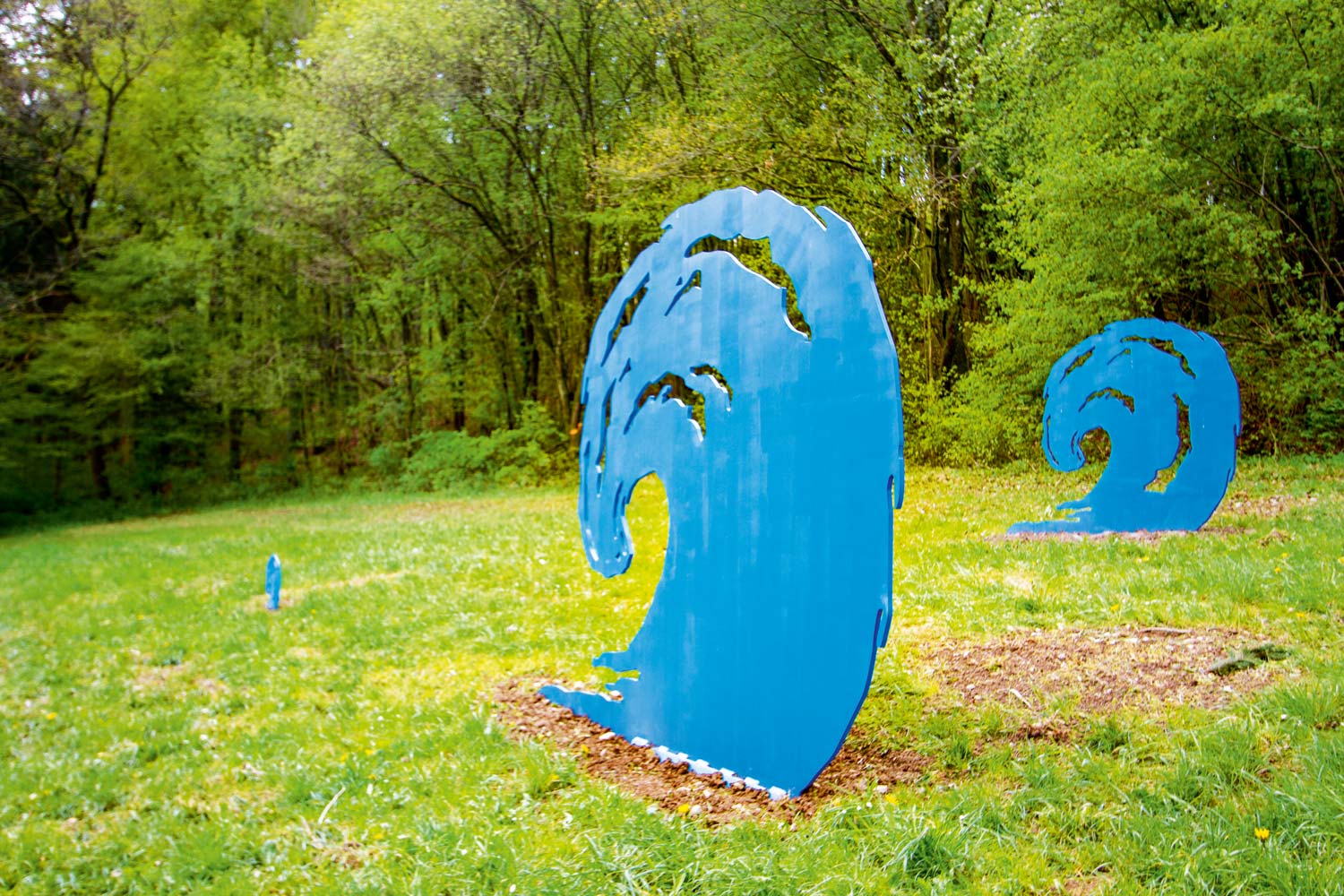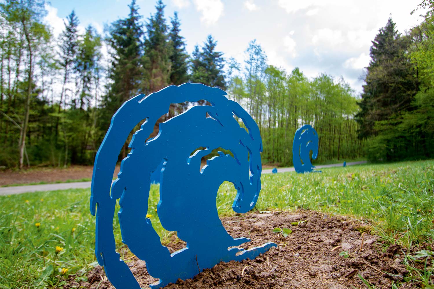 Mit ihrer Skulptur „Welle“ holt Nina Laaf das Meer in die Trockentäler der Muschelkalkregion und entwirft eine Szenerie aus sieben dynamischen Wellen verschiedener Größe.
